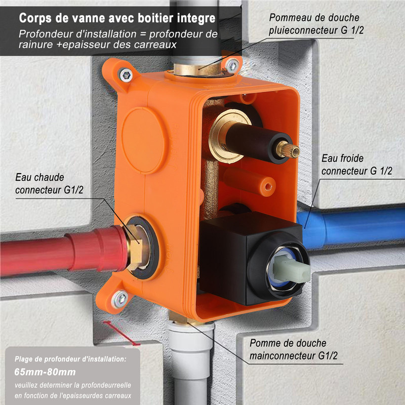 4. Conseil de l'installation de mitigeur: Plage de profondeur d'installation:65mm-80mm.