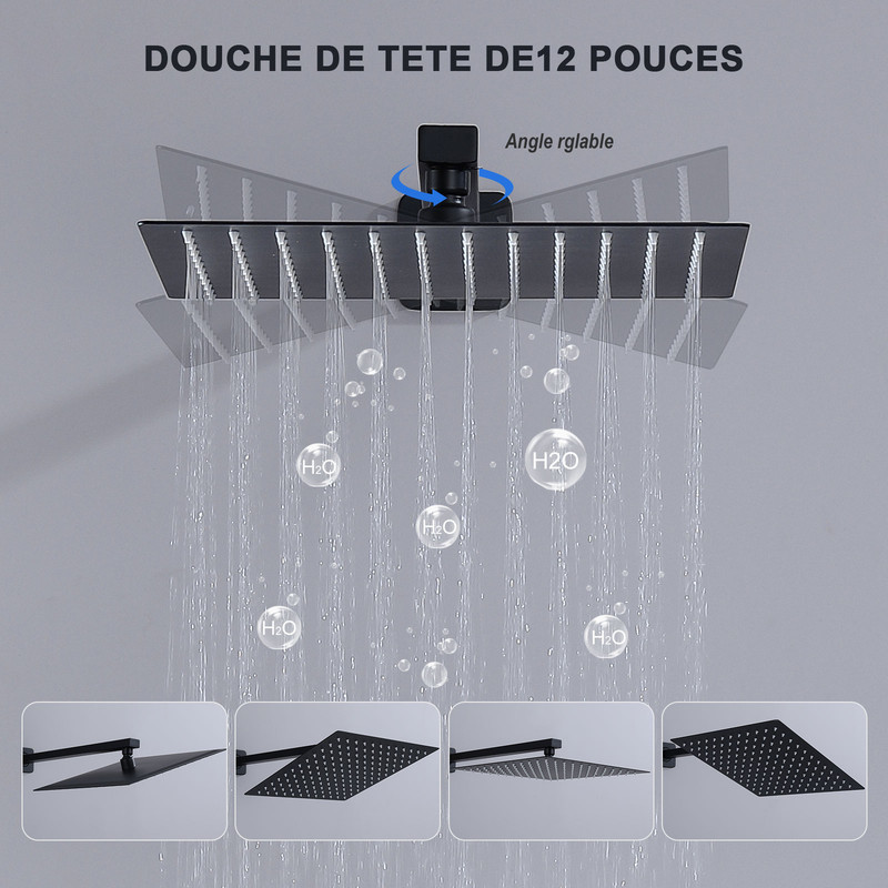 【Ensemble de douche 30x30cm】Douche de Tête en inoxydable,élargit la zone de sortie d'eau.buse en silicone anti-colmatage, résistant à la corrosion et aux températures élevées, facile à nettoyer, sans danger pour la santé humaine.Le spray supérieur et manuel peut être ajusté à différents angles dans toutes les directions adaptées aux différents utilisateurs.tournées pour augmenter la surface de la douche.