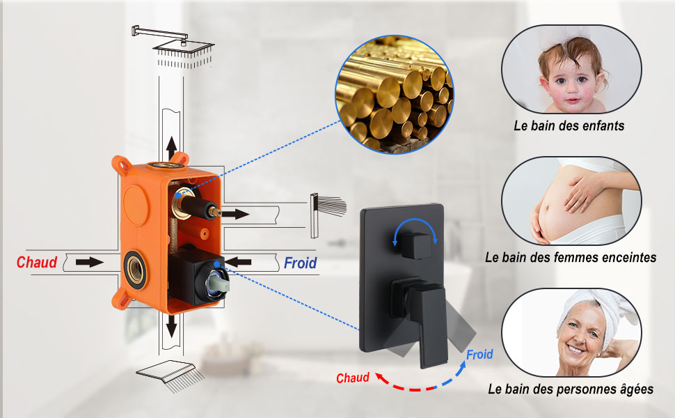 1. Si vous avez besoin d'installer cette colonne de douche encastré, merci de demander aux plombiers professionnels de l'installer.