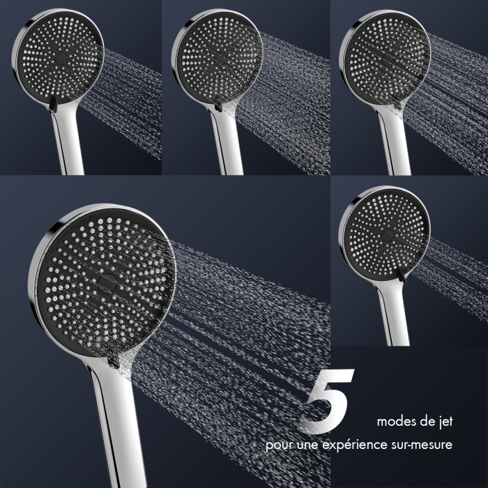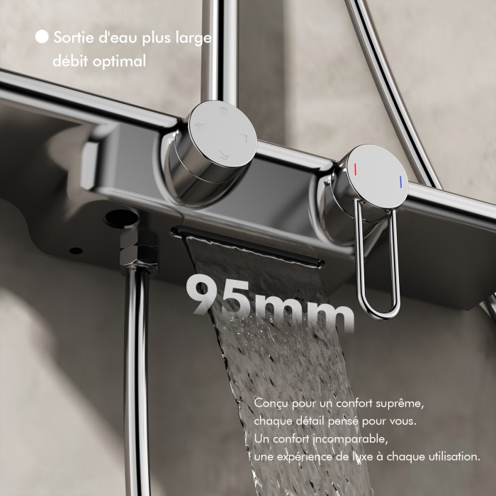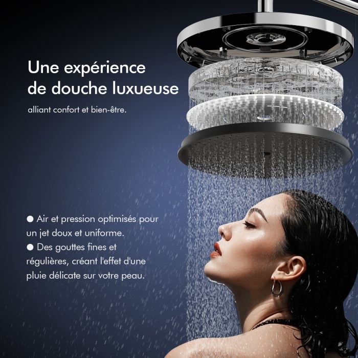 Douche confortable : Conception de sortie d'eau en cascade cachée, douce et sans éclaboussures ; Grand jet de sortie d'eau sous pression d'air, vous permet de commencer une douche confortable.