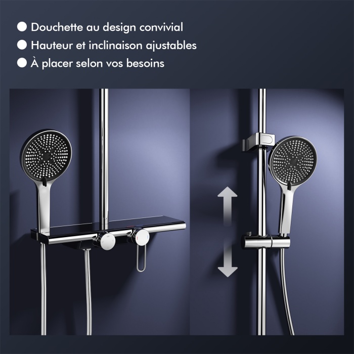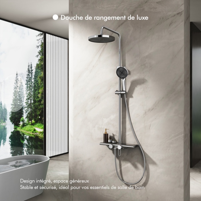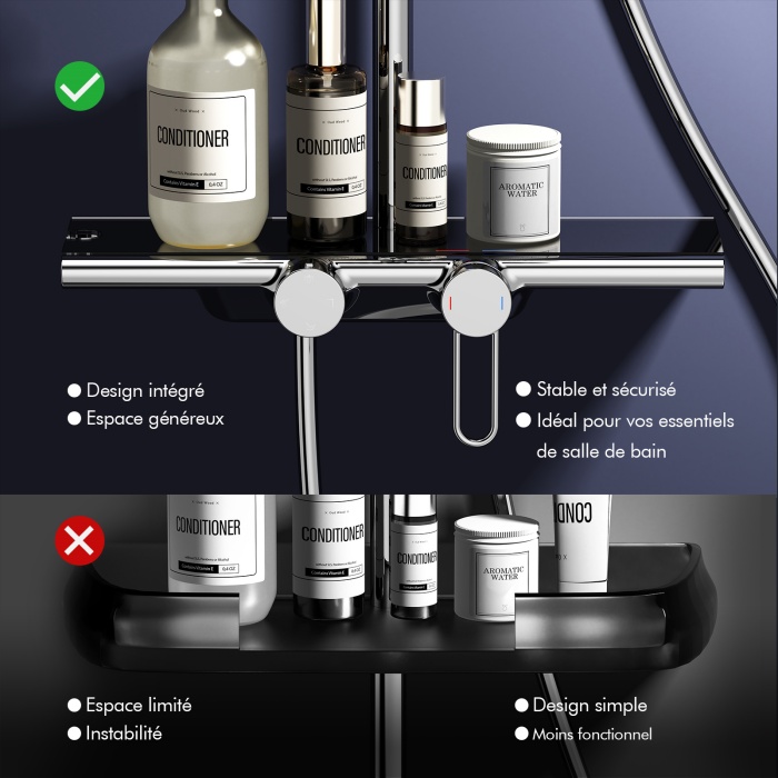 Super stockage : Grande plate-forme de stockage de 40 x 11 cm, peut contenir 3 à 4 bouteilles de gel douche. Rendez votre espace douche plus simple.