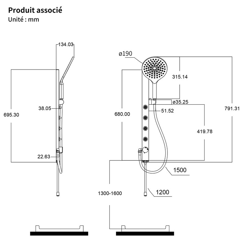 - Tringle de douche:Acier inoxydable