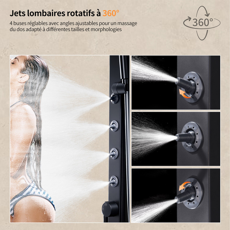 - 💆 4 Jets Latéraux Orientables – Effet SPA Relaxant