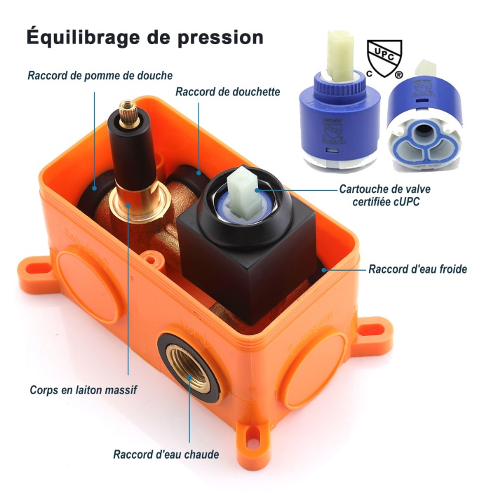 - Mitigeur mécanique est fabriqué en laiton de haute qualité, avec cartouche supérieure, matériau anti-bactérien, anti-corrosion, une durée de vie plus longue.