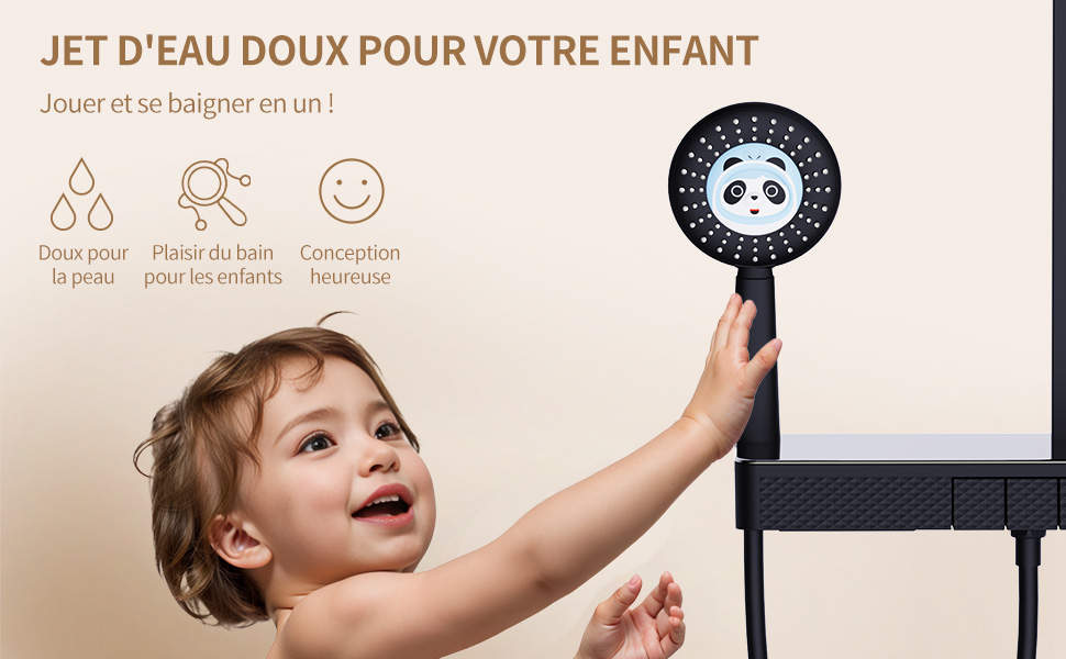 【Douchette enfant】- Un flux d'eau doux qui préserve et protège la peau,boutons type piano pour bascule rapide, fonctions activables simultanément pour bain parent-enfant.(Panda bleu central détachable)