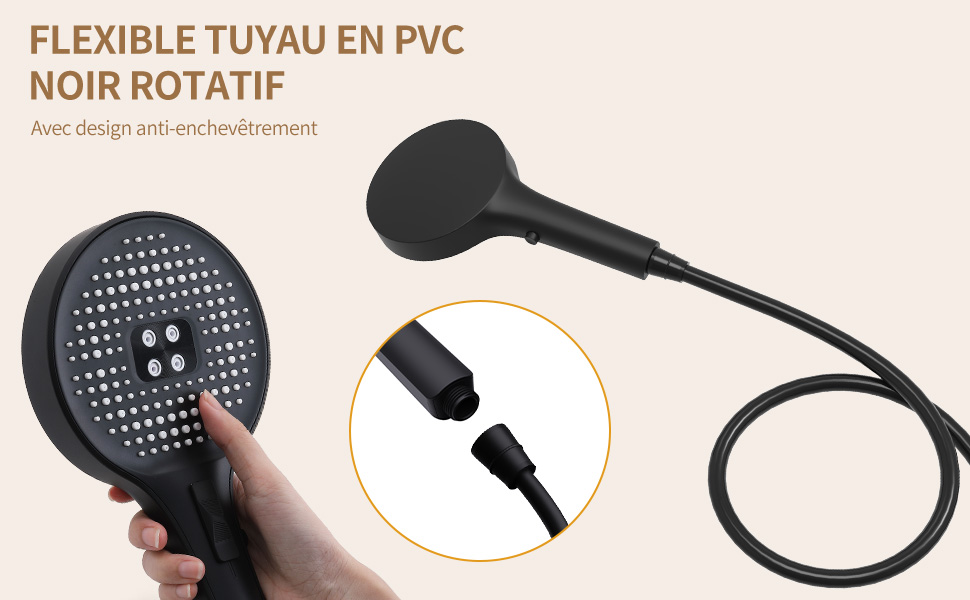 【Flexible de douche】 - La douchette à main est équipée d'un flexible de douche en PVC 150 cm, fabriqué avec une technologie de qualité 10, résistant à la chaleur, antidéflagrant et anti-enchevêtrement de avec filetage universel G1/2.vous permettant de vous mouvoir librement sous la douche,de vous étirer aisément et de vous adapter avec souplesse.