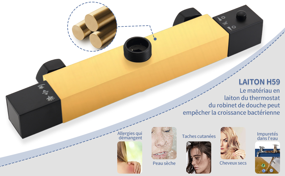 Le corps en laiton moulé avec précision résiste à la casse et aux fuites par temps extrêmement froid. Résistant à la corrosion acide, alcaline et à la haute pression de l'eau. Le laiton a une fonction bactéricide et constitue un matériau antibactérien pour l'eau résiduelle des robinets.