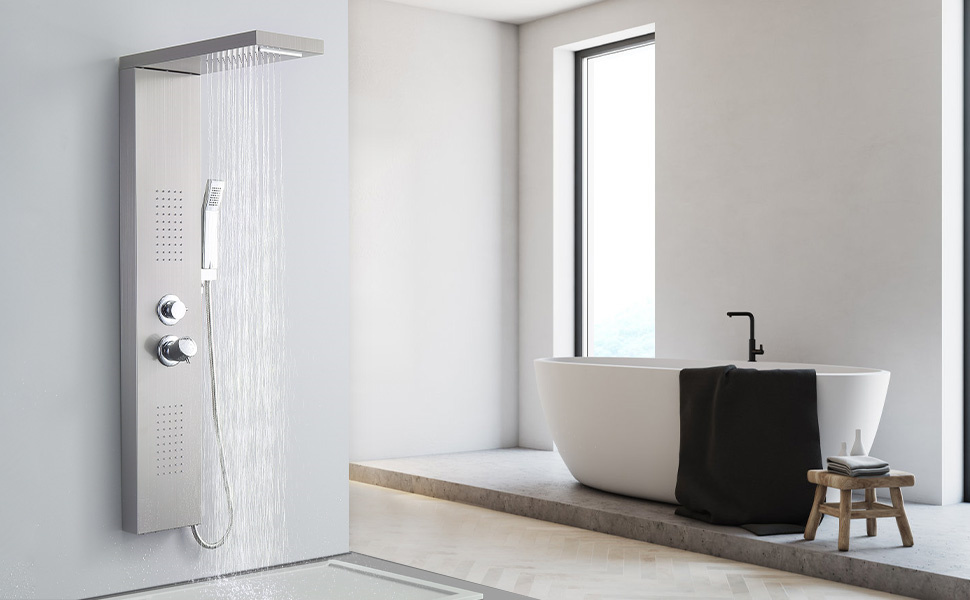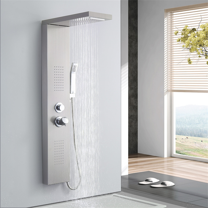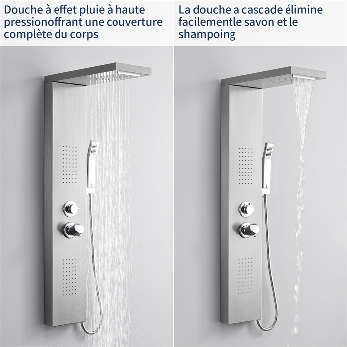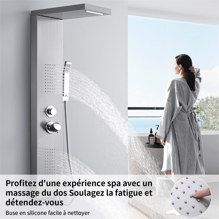 Colonne de douche brossé pour salle de bain, design carré minimaliste, noble et élégant, convient aux personnes qui recherchent une qualité de vie élevée.
