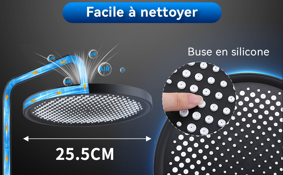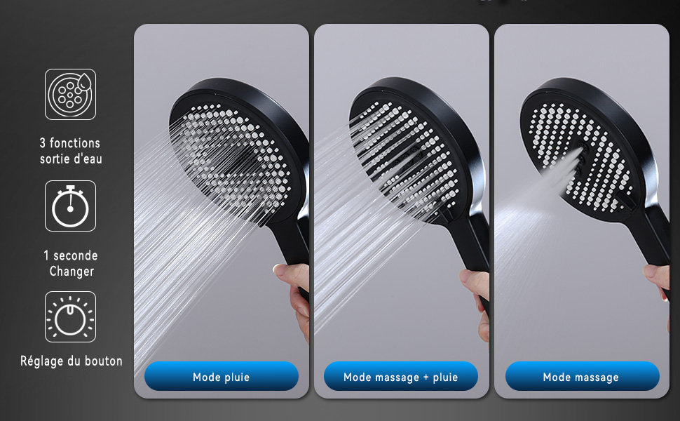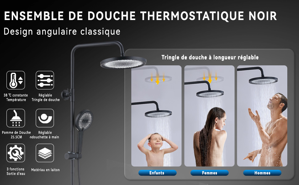Ne vous inquiétez plus des changements soudains de température ! Une colonne de douche thermostatique garantit que la température de l'eau reste constante, elle est plus sûre, plus économe en énergie et garantit une expérience de douche plus agréable pour vous et votre famille.