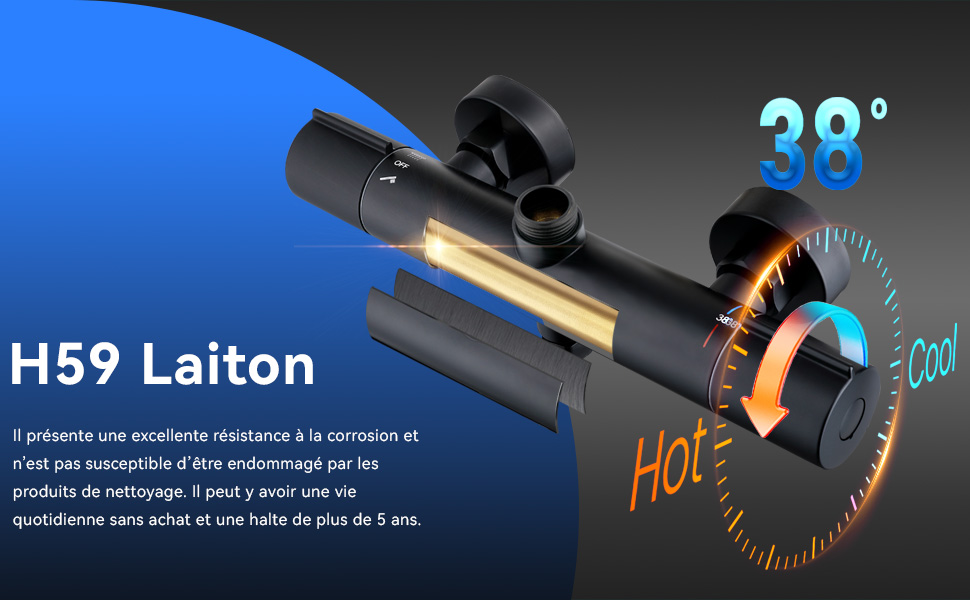•Type de robinetterie: Vanne thermostatique (laiton)