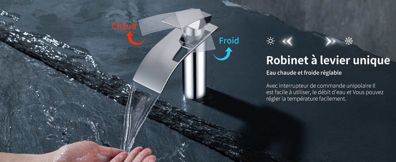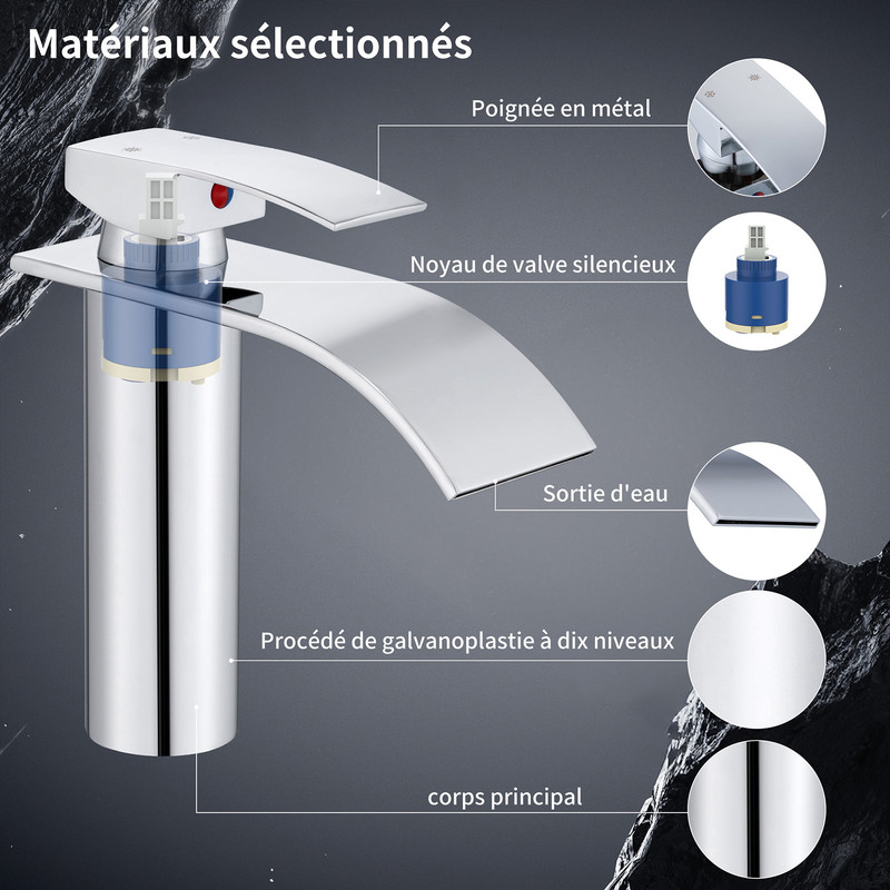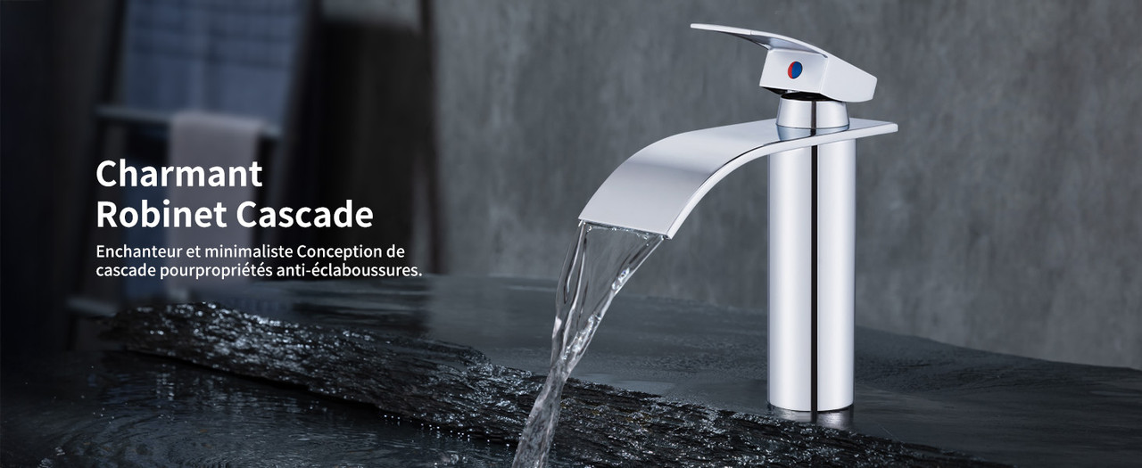 Le bec en forme de cascade offre un écoulement d'eau doux et apaisant, idéal pour une salle de bain moderne et zen.