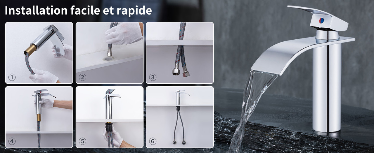 Compatible avec la plupart des lavabos standards – montage rapide avec tous les accessoires inclus.