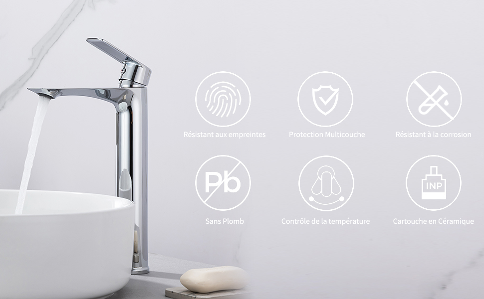 - La finition chromée rend le mitigeur lavabo résistant à la rouille et brillant comme un miroir.