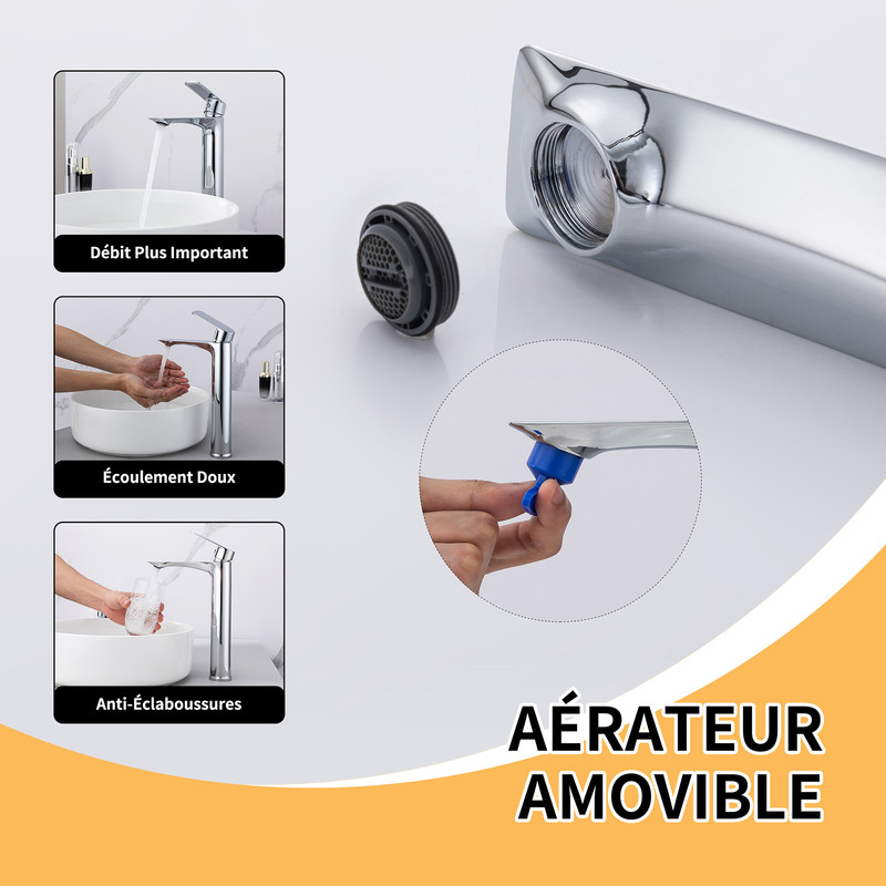 - Équipé d'un aérateur en plastique ABS, il mélange l'air et l'eau pour produire un jet doux qui évite les éclaboussures et offre de fines gouttes généreuses.